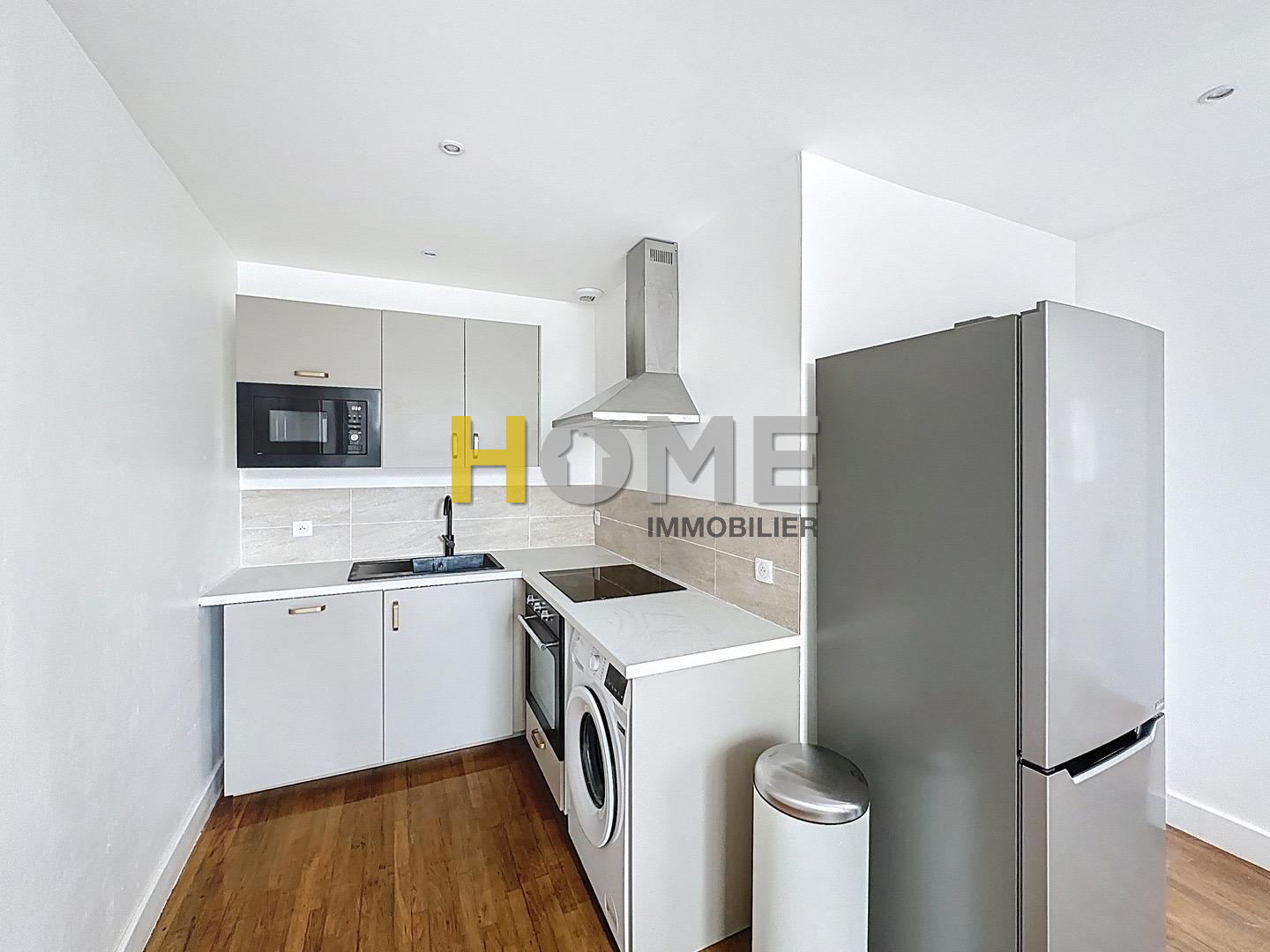 Il comprend une pièce de vie avec coin cuisine meublée et équipée (four, micro-onde, hotte, plaques de cuisson, réfrigérateur, lave-linge et lave-vaisselle), une chambre avec rangements ainsi qu'une salle d'eau avec WC.